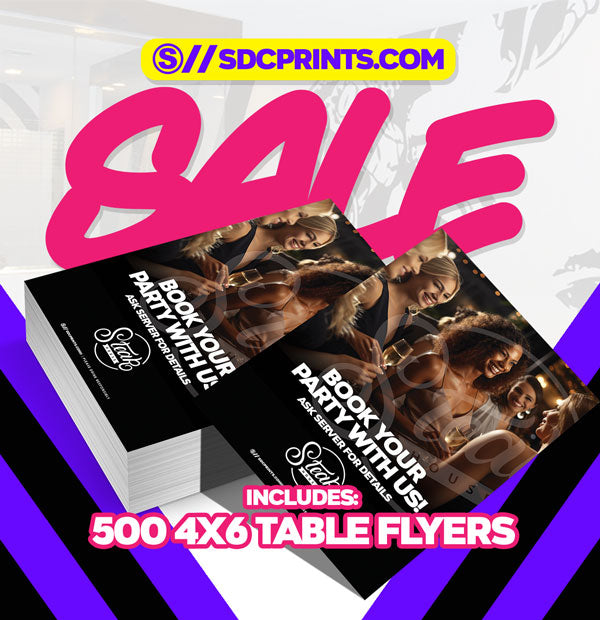 500 - 4x6 Table Cards/Flyers printed full color 1 or 2 sides on 14pt C2S with UV Varnish*