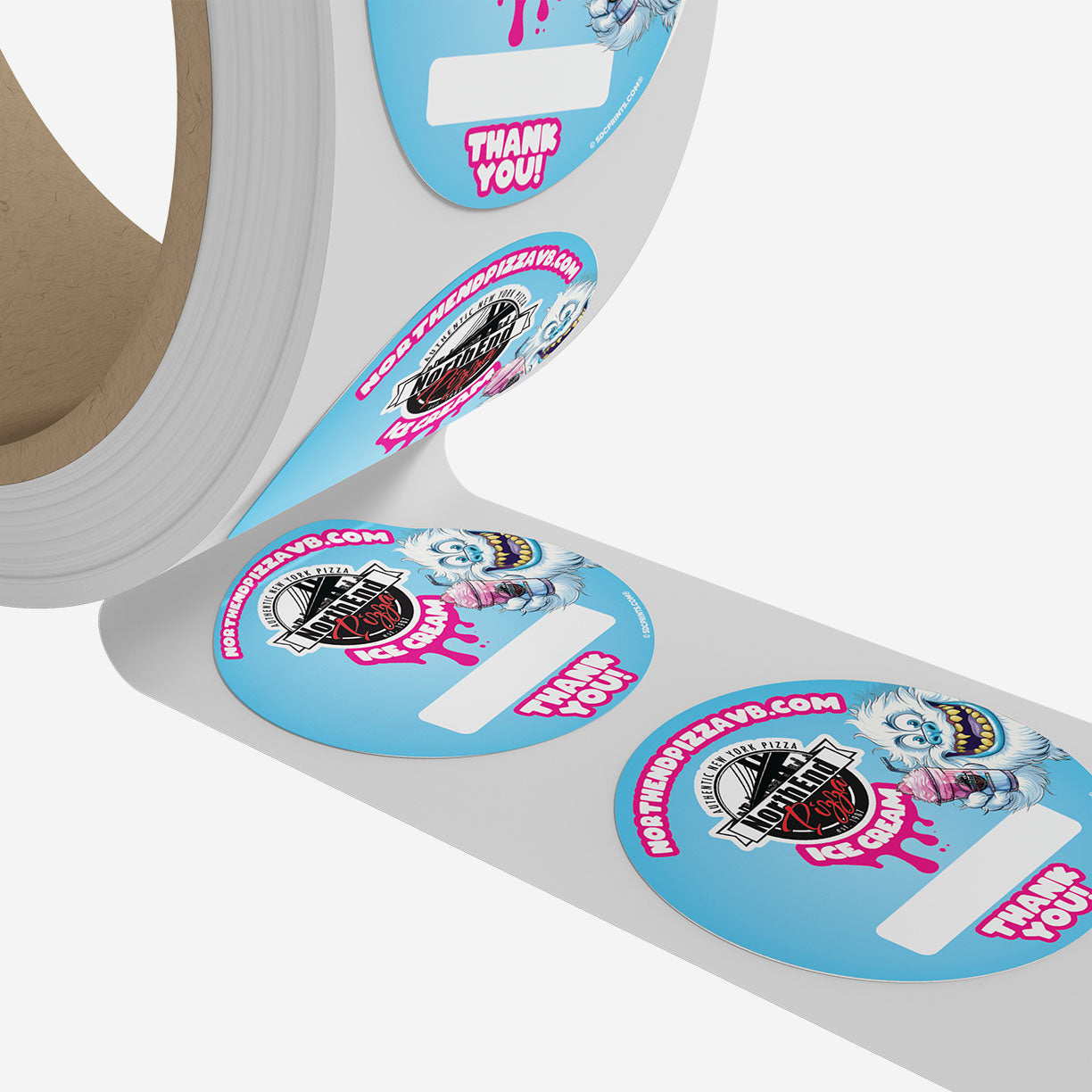 These custom branded delivery stickers are printed in full color on high-quality paper stock, ensuring a clean seal while reinforcing your brand on every to-go order.