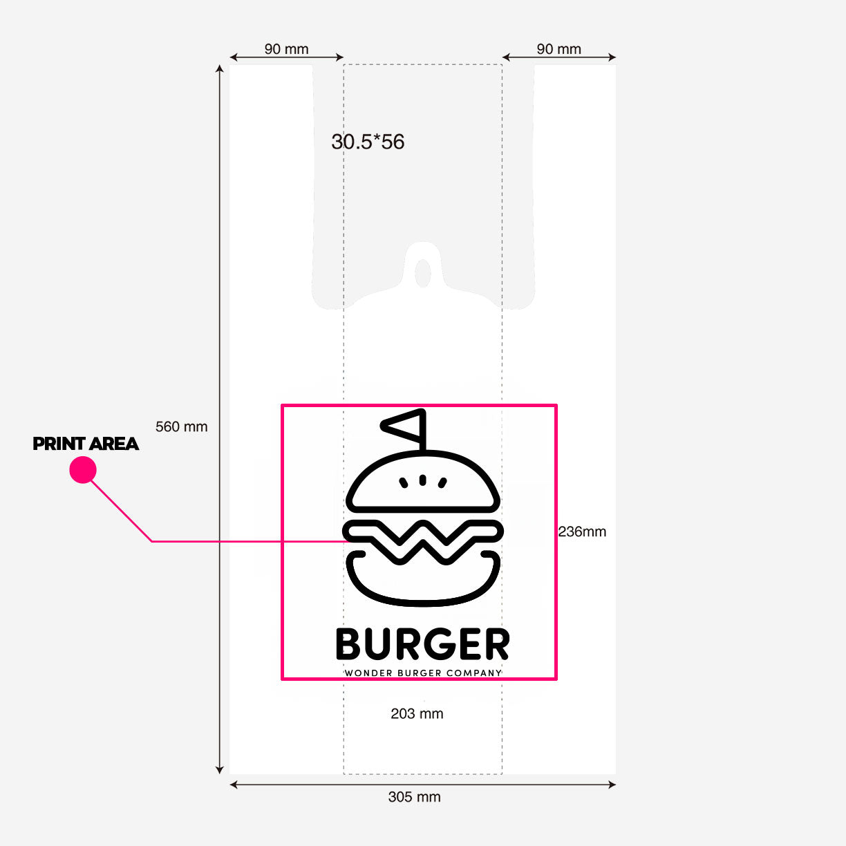 Custom Printed Branding: Leave a lasting impression with custom printing! Our to-go bags are expertly printed on one side with your brand's logo and message, serving as a powerful tool for brand awareness and customer engagement. 1 color custom print.